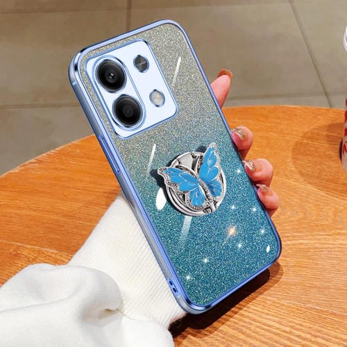 Para Redmi Note 13 Funda para Teléfono de TPU con Soporte de Mariposa con Brillo Degradado Plateado (Azul Sierra)