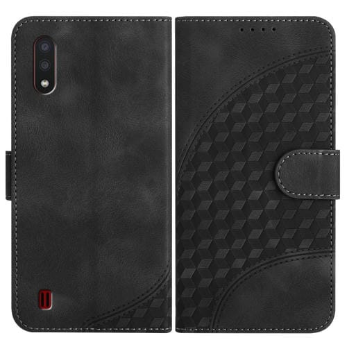 Funda de Cuero Samsung Galaxy A01 M01 Yx0060 Relieve Cabeza de Elefante con Cordón (Negro)