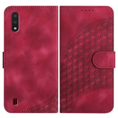 Funda para Teléfono Samsung Galaxy A01 M01 Yx0060 Cuero Relieve Cabeza de Elefante con Cordón (Rojo Rosa)