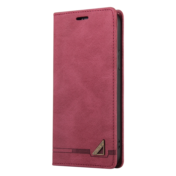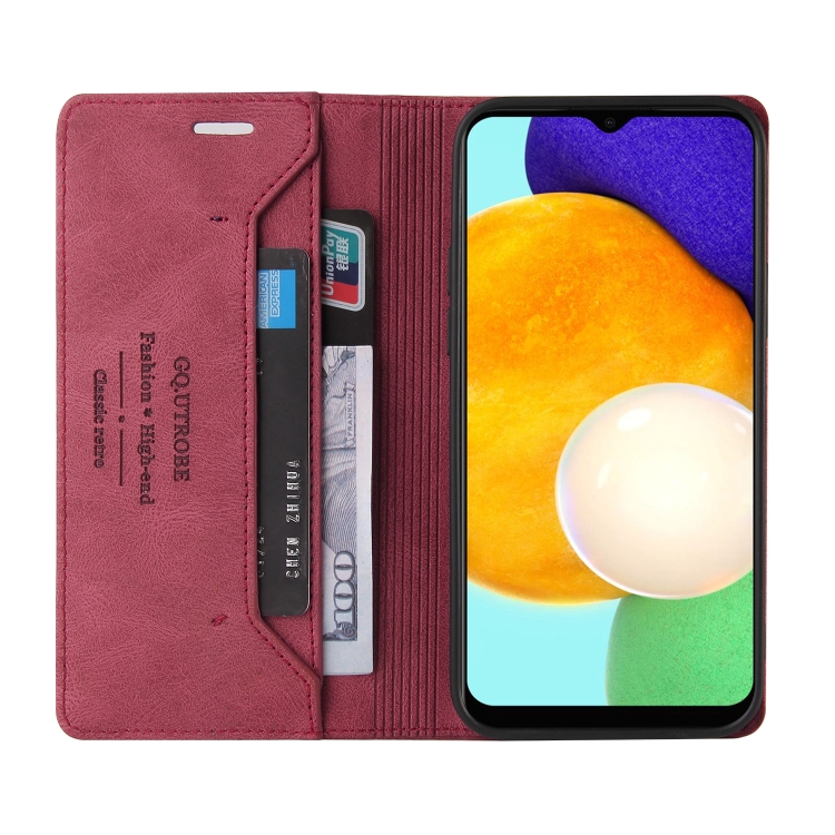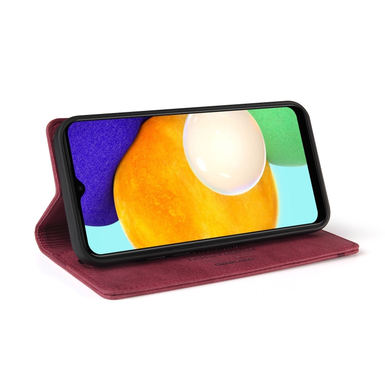 Funda de Cuero Samsung Galaxy A03S Skin Feel con Tapa Horizontal Cepillo Antirrobo y Soporte (Rojo Vino)
