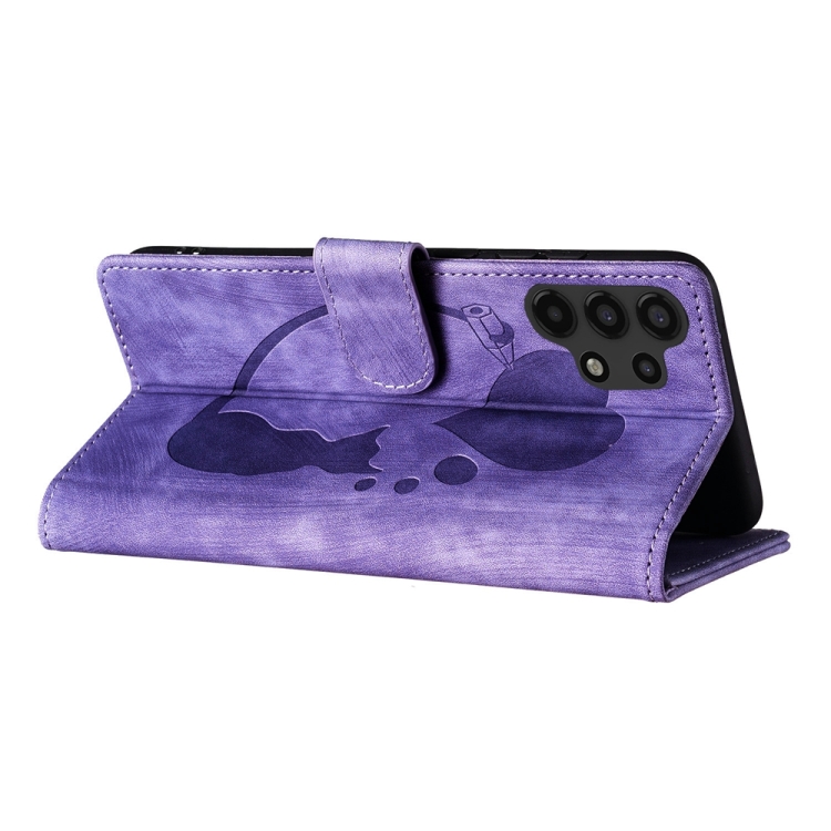 Estuche para Teléfono Samsung Galaxy A13 4G 5G A04 Cuero Relieve Gato Corazón Bolígrafo (Púrpura)