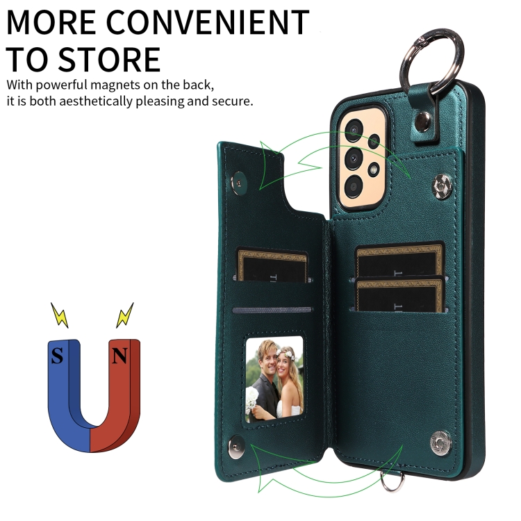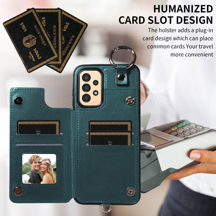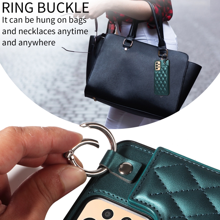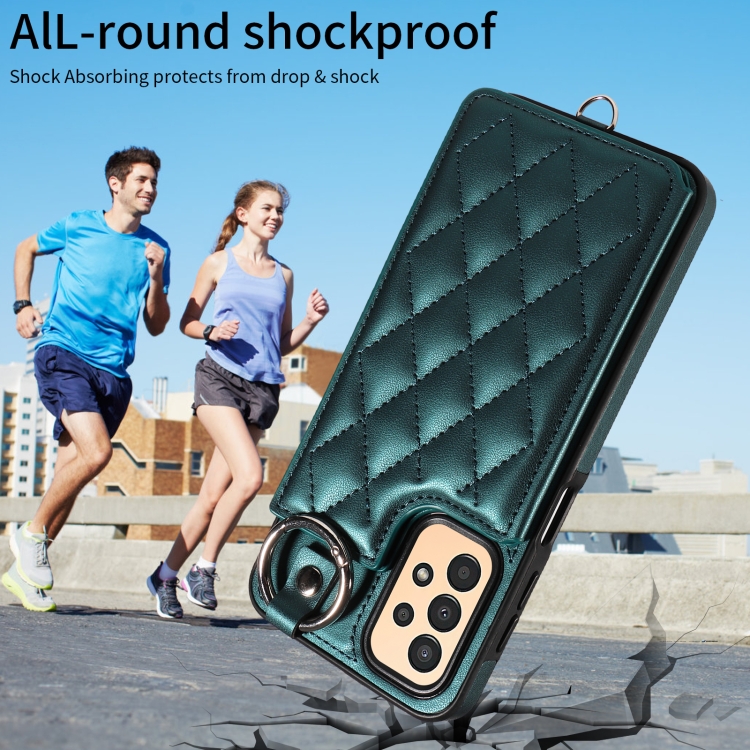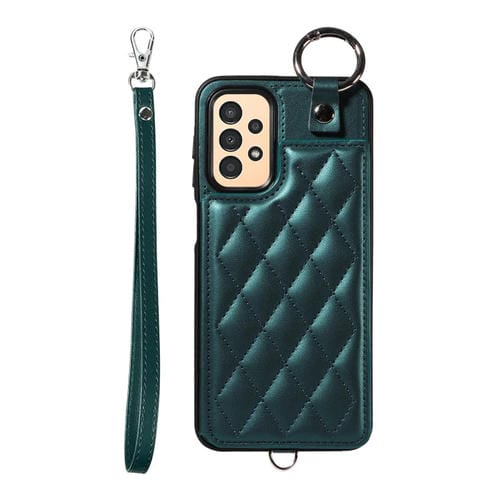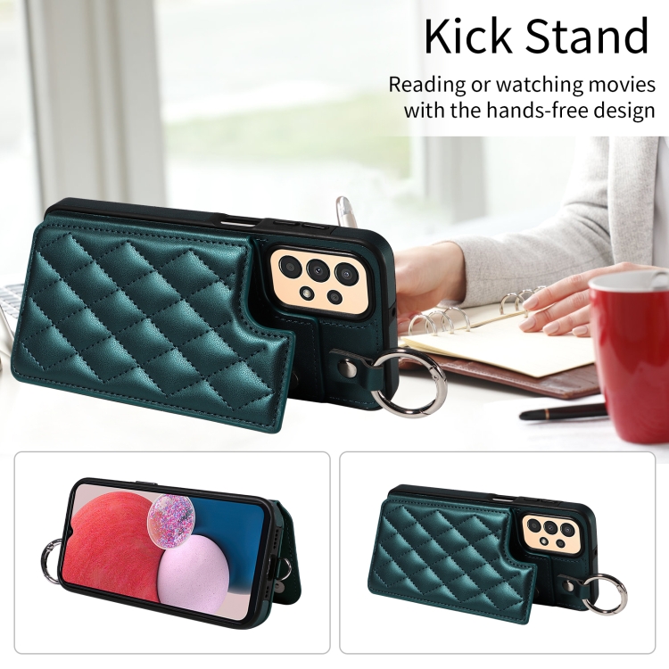 Estuche para Teléfono Samsung Galaxy A13 4G y 5G con Bolsa para Tarjeta Textura Rómbica Cordón Corto (Verde)