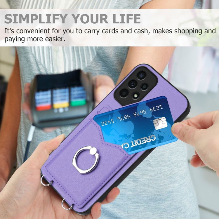Estuche para Teléfono Samsung Galaxy A13 4G R20 con Soporte para Tarjeta con Anillo (Púrpura)