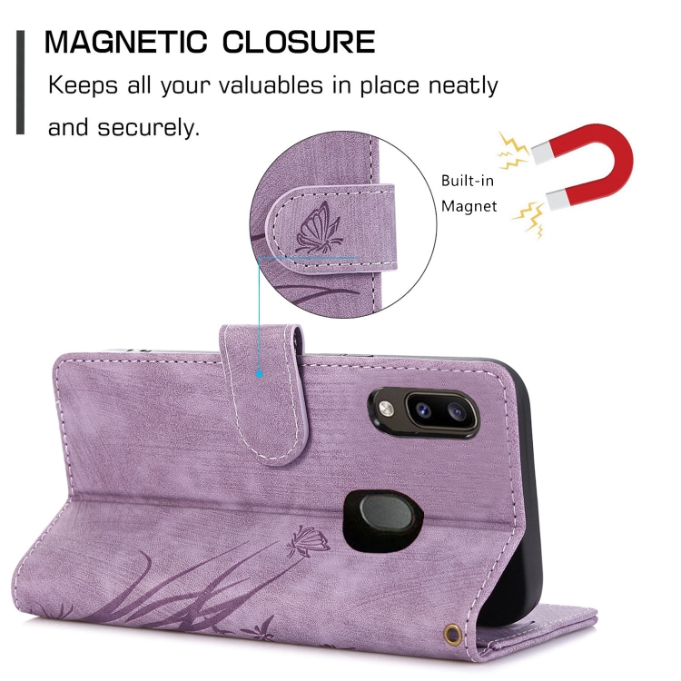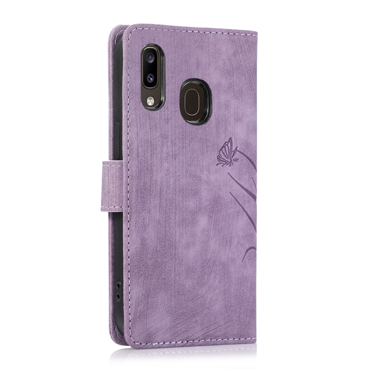 Funda para Teléfono Samsung Galaxy A20 A30 Cuero Relieve Mariposa Orquídea (Púrpura)