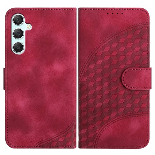 Funda para Samsung Galaxy A34 5G Yx0060 de Cuero con Relieve Cabeza de Elefante y Cordón (Rojo Rosa)
