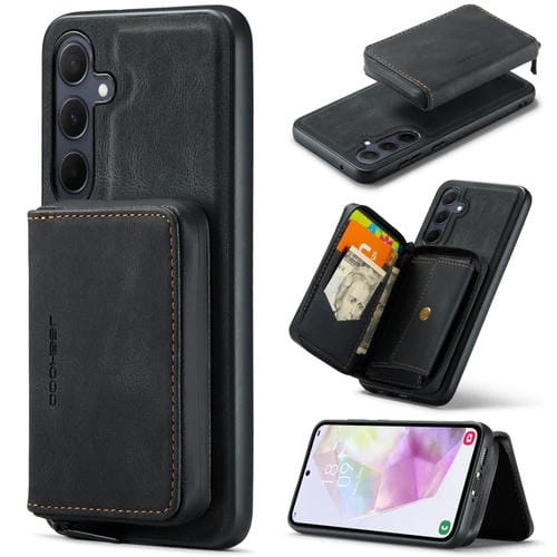 Funda para Teléfono Samsung Galaxy A35 5G Jeehood Cuero con Tapa Horizontal y Cremallera Magnética (Negro)