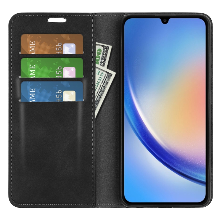 Funda para Samsung Galaxy A35 Cuero Succión Magnética Piel Retro (Negro)