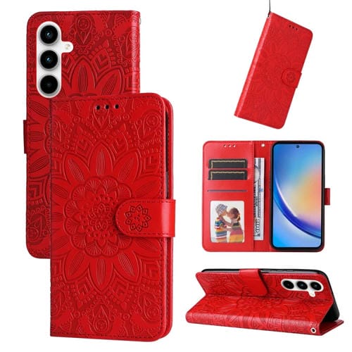 Funda para Teléfono Samsung Galaxy A35 Cuero Girasol en Relieve (Rojo)