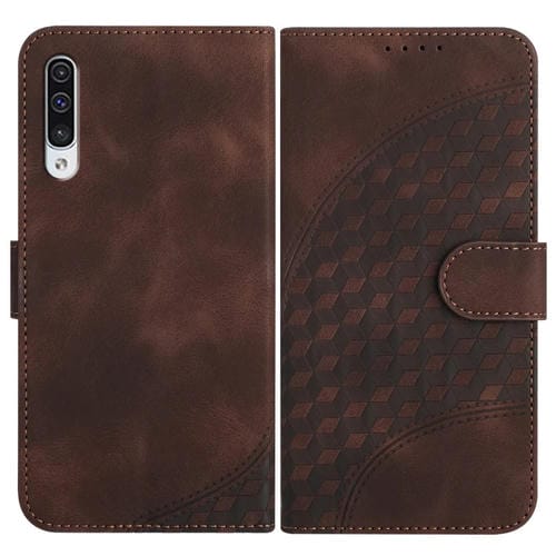 Funda para Teléfono Samsung Galaxy A50 A50S Yx0060 Cuero Relieve Cabeza de Elefante con Cordón (Café)
