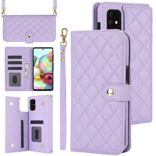Funda Cruzada de Cuero Samsung Galaxy A51 4G Rómbico Multifunción (Púrpura)