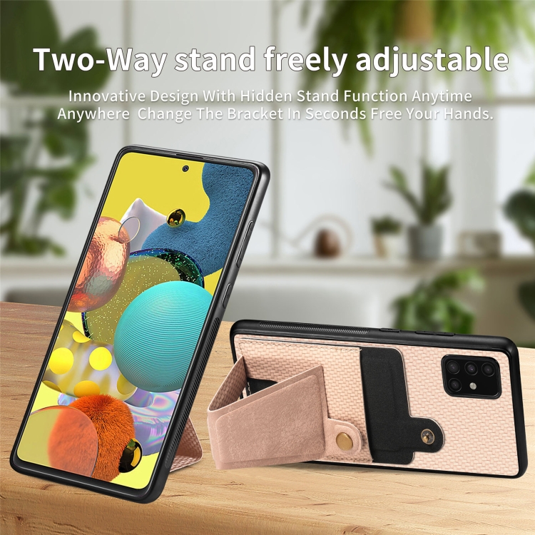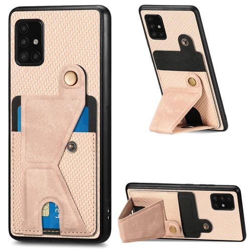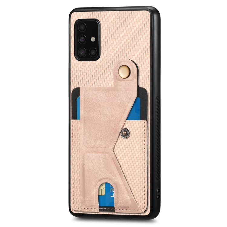 Funda Cartera Samsung Galaxy A51 5G Fibra de Carbono Flip Card Soporte en Forma de K (Caqui)
