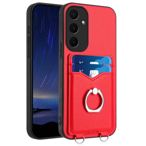 Estuche para Teléfono Samsung Galaxy A55 5G R20 con Soporte para Tarjeta con Anillo (Rojo)