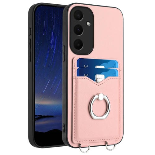Estuche para Teléfono Samsung Galaxy A55 5G R20 con Soporte para Tarjeta y Anillo (Rosa)