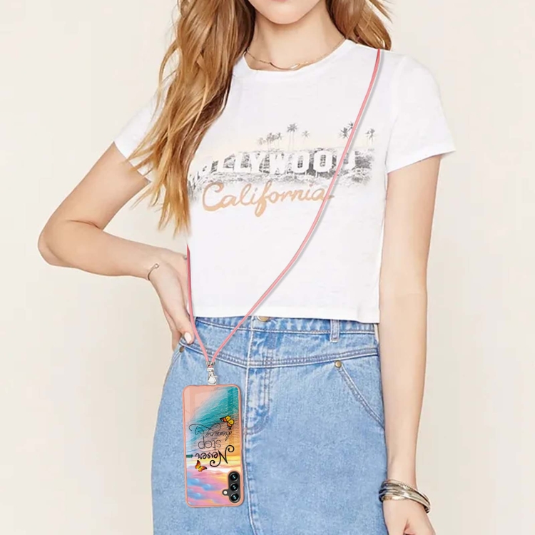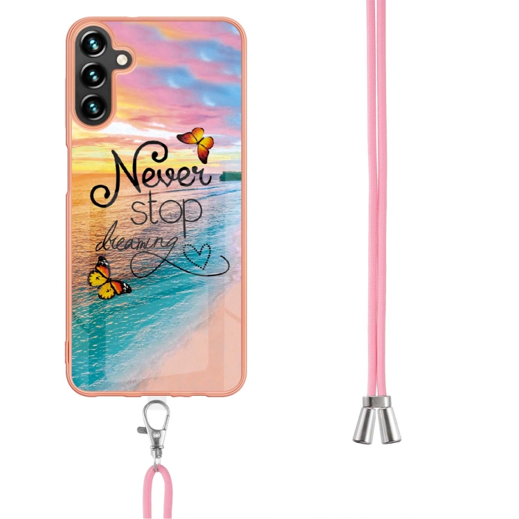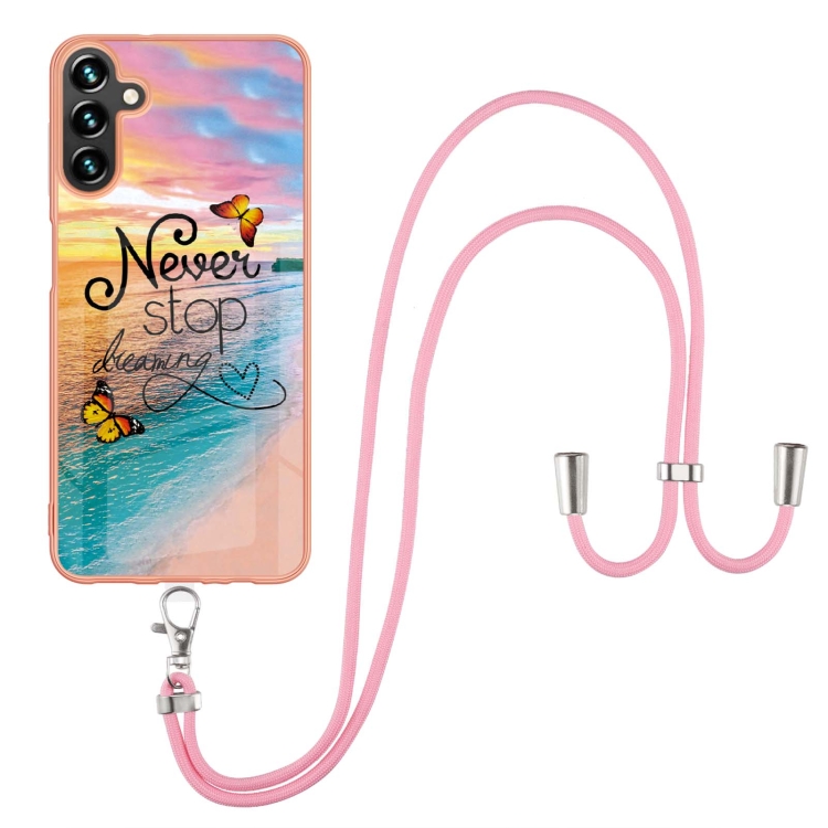 Estuche para Teléfono Samsung Galaxy A55 Imd TPU con Galvanoplastia y Cordón (Mariposa de Ensueño)