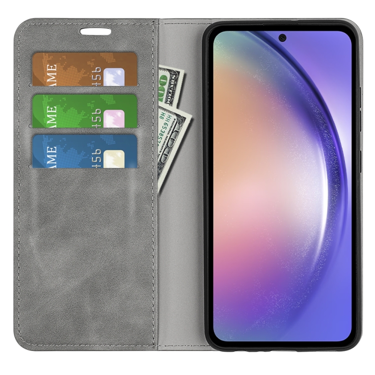 Funda para Teléfono Samsung Galaxy A55 Cuero Succión Magnética Piel Retro (Gris)