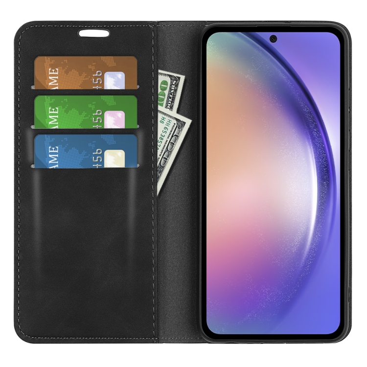 Funda para Teléfono Samsung Galaxy A55 Cuero Succión Magnética Piel Retro (Negro)