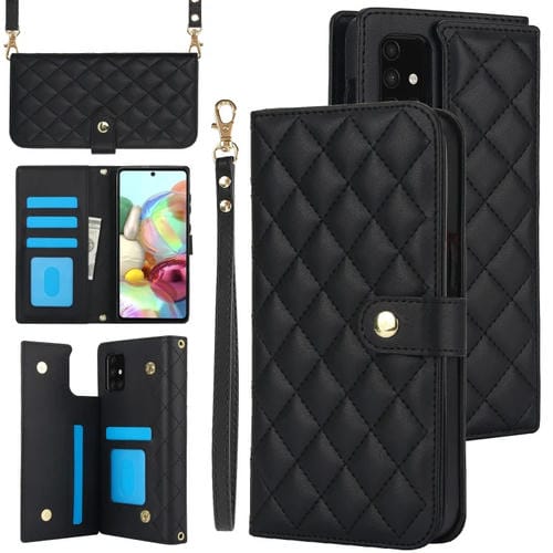 Funda Cruzada de Cuero Samsung Galaxy A71 4G Rómbico Multifunción (Negro)