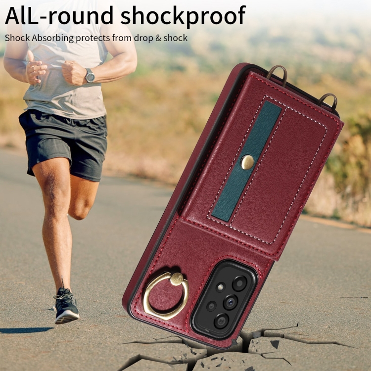 Funda de Cuero Crossbody Wallet Bag Ring Holder para Samsung Galaxy A73 5G (Rojo)
