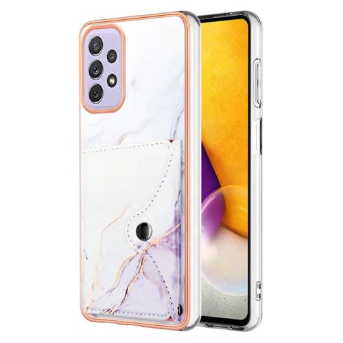Estuche para Teléfono Samsung Galaxy A73 5G con Ranura para Tarjeta Imd y Patrón de Mármol (Blanco y Morado)