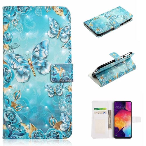 Funda para Teléfono Samsung Galaxy M20 Cuero Dibujo 3D Relieve al Óleo (Mariposas Azules)