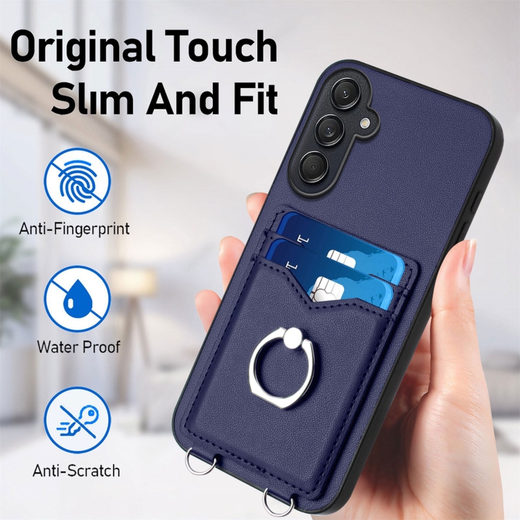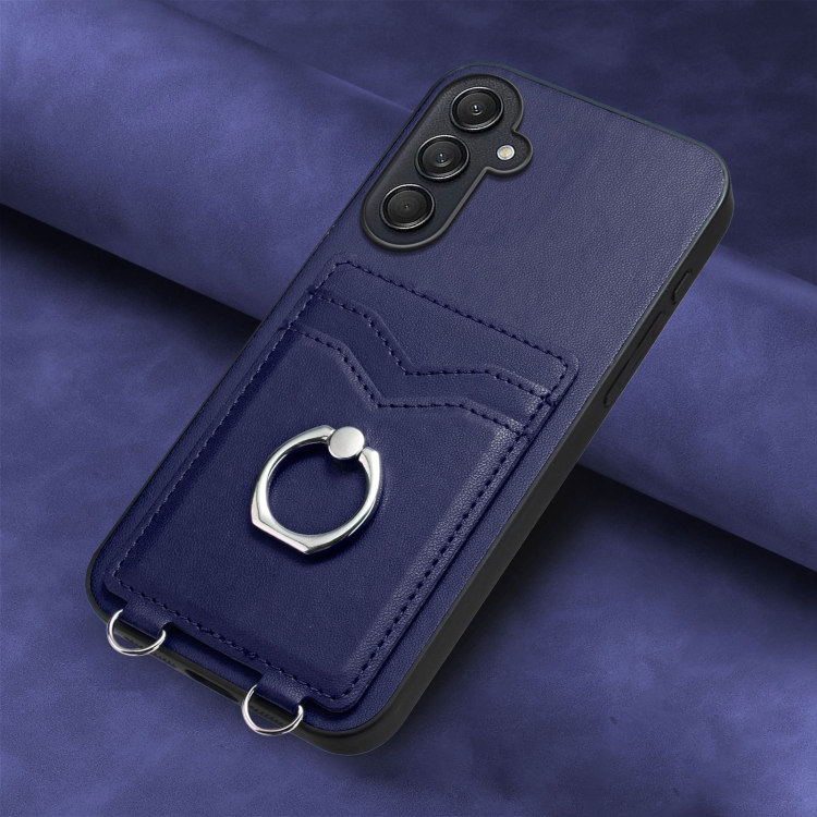 Estuche para Teléfono Samsung Galaxy M55 C55 5G R20 con Soporte para Tarjeta con Anillo (Azul)