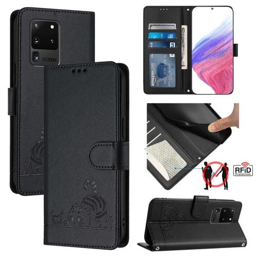 Estuche para Teléfono Samsung Galaxy Note20 Ultra Cat Rat Cuero Rfid Patrón En Relieve con Cordón (Negro)