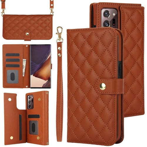 Estuche para Teléfono Samsung Galaxy Note20 Ultra Crossbody de Cuero Rómbico Multifunción (Marrón)
