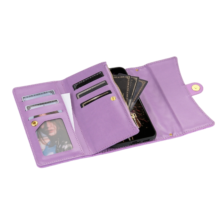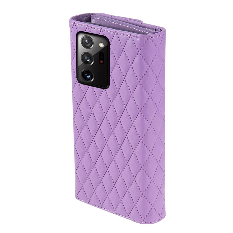 Estuche para Teléfono Samsung Galaxy Note20 Ultra con Billetera Múltiples Tarjetas Cremallera Cuero Rómbico (Púrpura)
