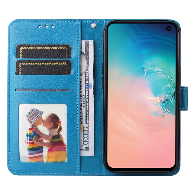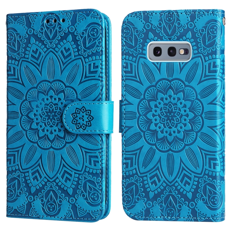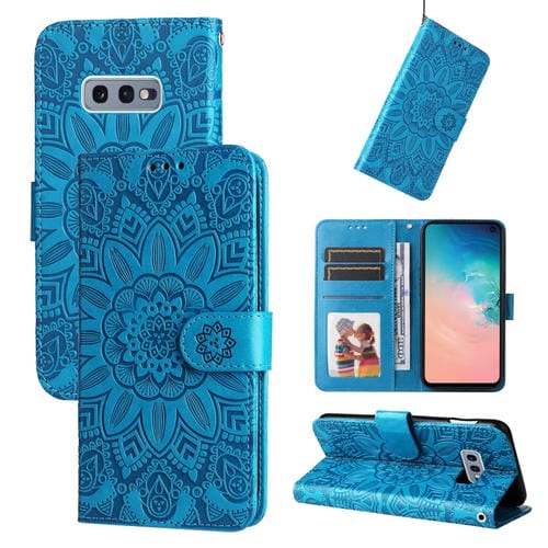 Estuche para Teléfono Samsung Galaxy S10E Cuero Estampado Girasol En Relieve (Azul)