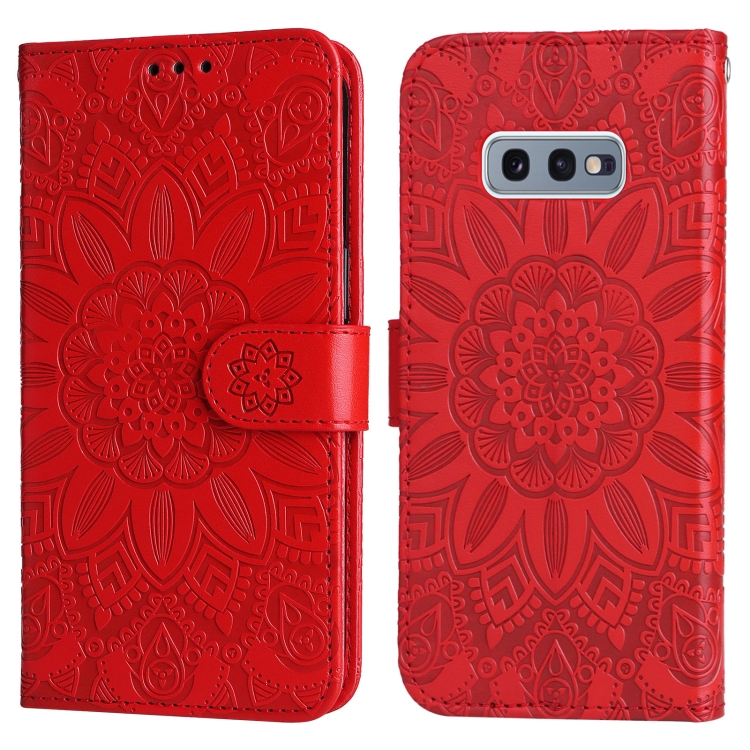 Estuche para teléfono Samsung Galaxy S10E Cuero Estampado Girasol En Relieve (Rojo)