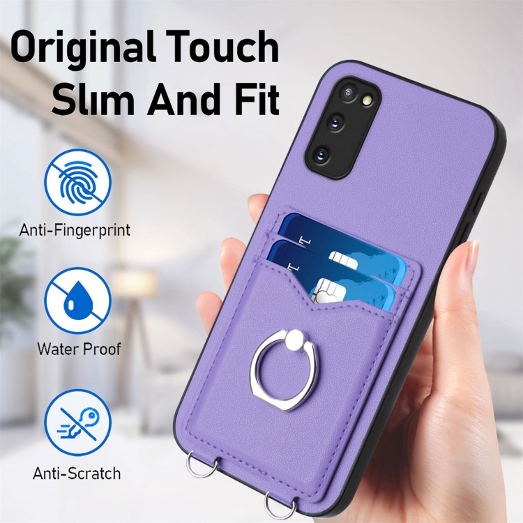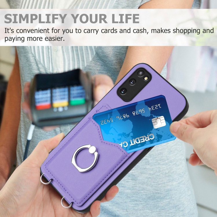 Estuche para Teléfono Samsung Galaxy S20 FE R20 con Soporte para Tarjeta y Anillo (Púrpura)