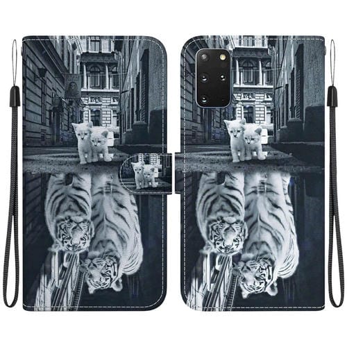 Funda de Cuero Samsung Galaxy S20 con Dibujo Coloreado y Textura de Cristal (Reflejo de Tigre Gato)