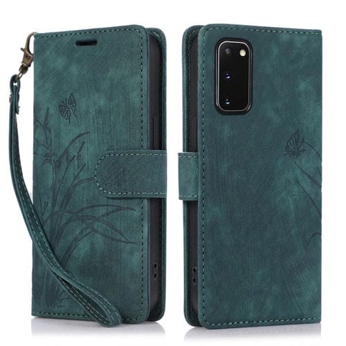 Funda para Samsung Galaxy S20 + Funda de Cuero con Relieve Mariposa Orquídea (Verde)