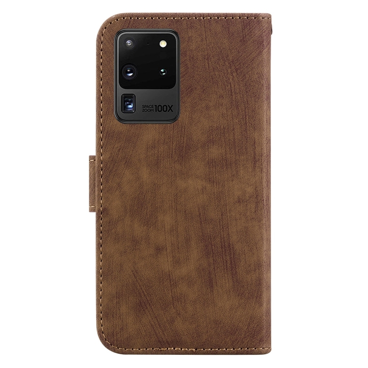 Para Samsung Galaxy S20 Ultra Little Tiger Funda de cuero en relieve para teléfono (marrón)