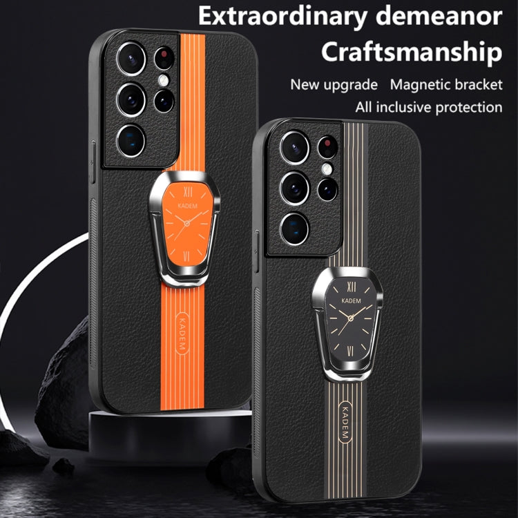 Estuche Magnético Samsung Galaxy S21 Ultra 5G Parte Trasera Cuero Litchi con Soporte (Negro)