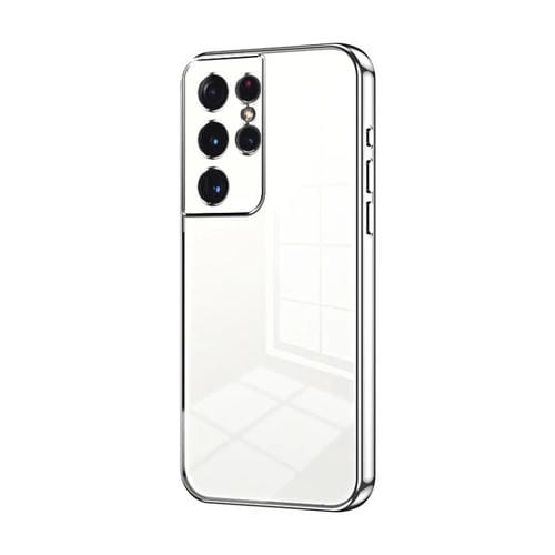 Estuche para Teléfono Samsung Galaxy S21 Ultra 5G con Orificio Fino y Revestimiento Transparente (Plateado)