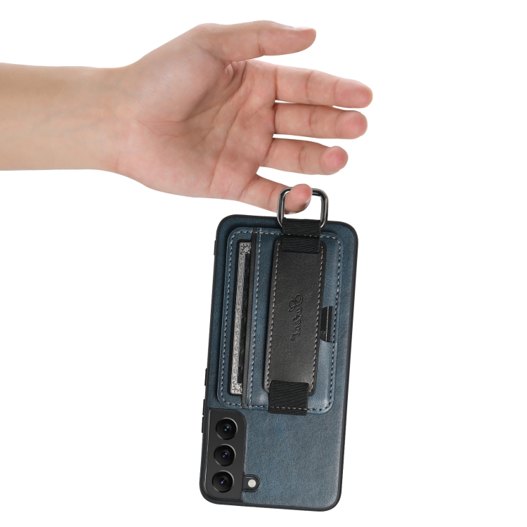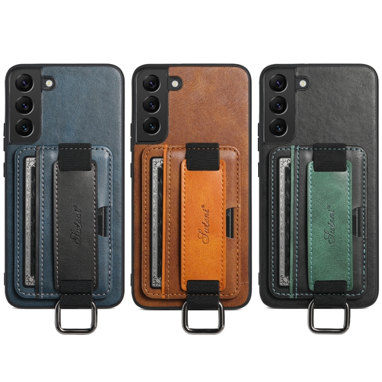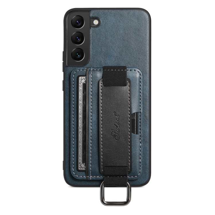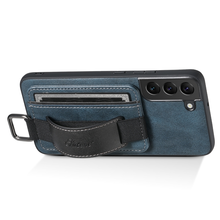 Para Samsung Galaxy S22+ 5G Suteni H13 Tarjeta Monedero Correa de muñeca Titular PU Caja del teléfono (Azul)