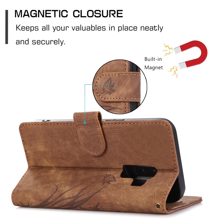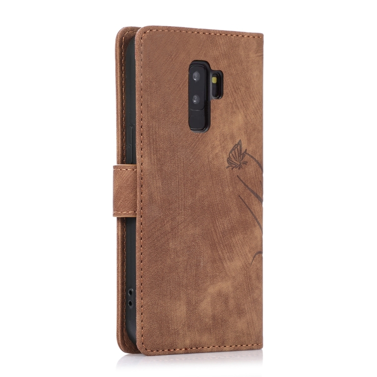 Funda para Samsung Galaxy S9 Cuero Relieve Mariposa Orquídea (Marrón)