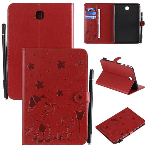 Funda Protectora Samsung Galaxy Tab A8.0 T350 Cuero Soporte Ranuras Tarjetas (Rojo)
