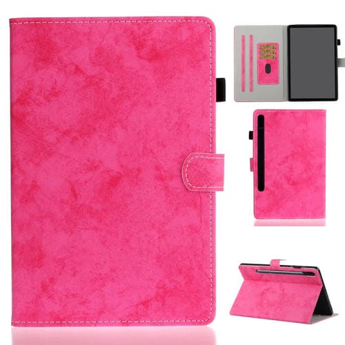 Funda para Samsung Galaxy Tab S8 y Tab S7 11.0 T870 con soporte, ranura para tarjeta, soporte para pluma y tira antideslizante (Rosa Roja)