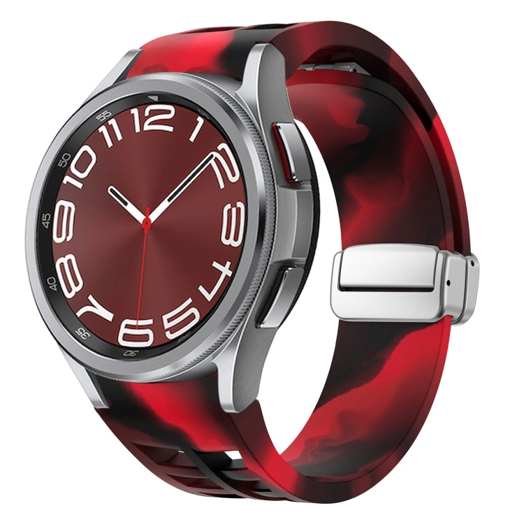 Correa de Silicona para Samsung Galaxy Watch 6 Classic 43/47mm Richard con Hebilla Plateada Plegable Magnética (Camuflaje Rojo Negro)