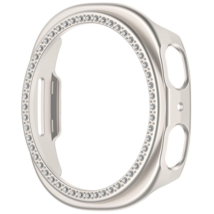 Para Samsung Galaxy Watch 8 de 44 mm, carcasa de PC hueca con una sola fila de diamantes y media cobertura (luz de estrella esmerilada)