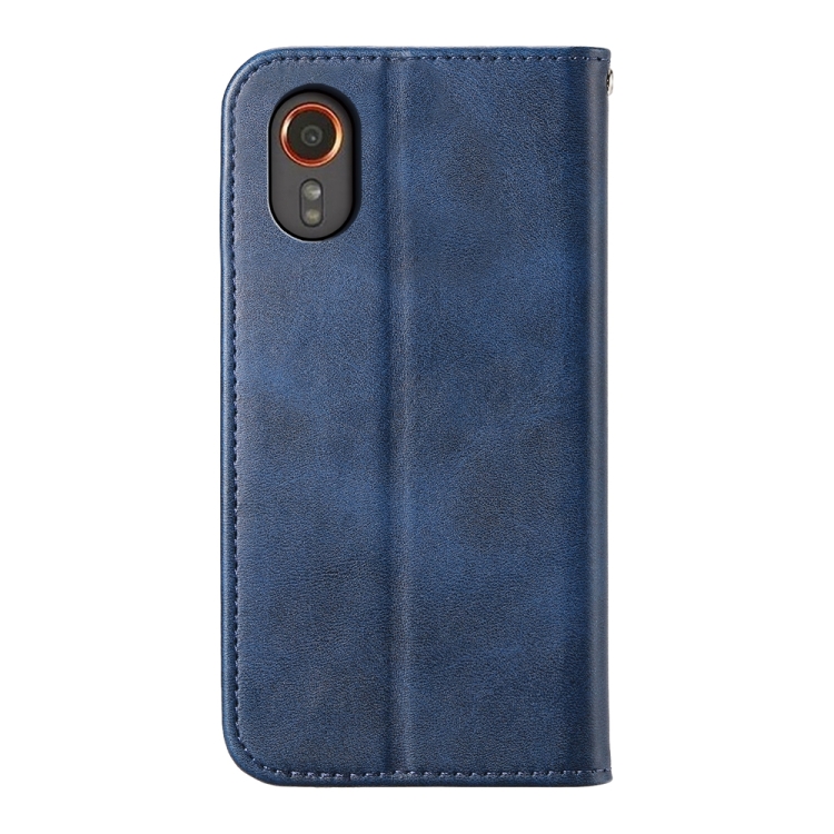 Funda para Teléfono Samsung Galaxy Xcover 7 Cuero Magnético Textura Becerro Rejilla Cúbica (Azul)