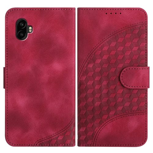 Funda de Cuero Samsung Galaxy Xcover6 Pro Yx0060 con Relieve y Cabeza de Elefante con Cordón (Rojo Rosa)