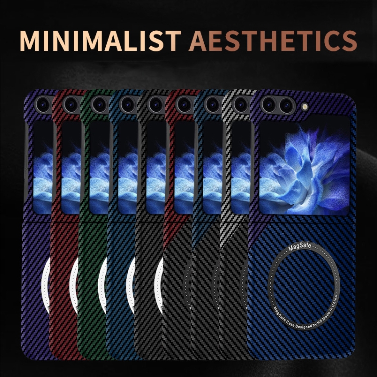Funda para Samsung Galaxy Z Flip5 Textura de Fibra de Carbono Magsafe Magnética (Púrpura)