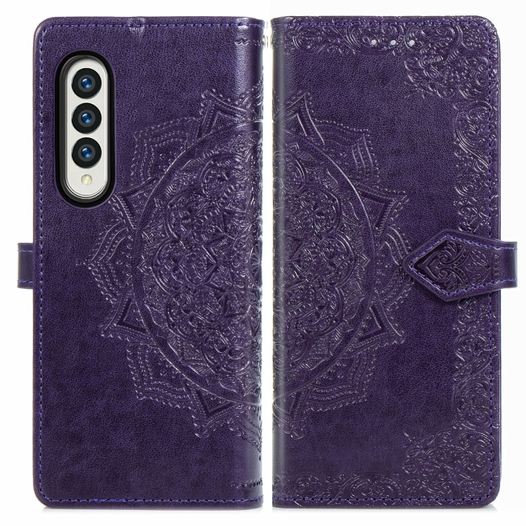 Estuche para Teléfono Samsung Galaxy Z Fold4 Mandala Flower Cuero en Relieve (Púrpura)