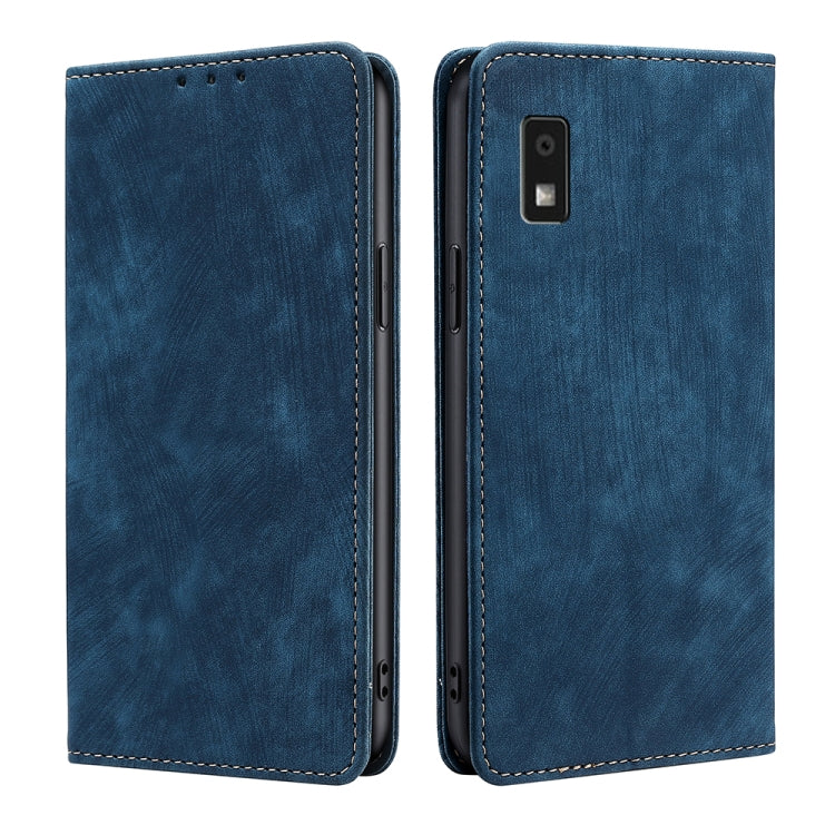 Funda de Cuero Magnética para Sharp Aqous Wish 3 con Protección RFID y Cepillo Antirrobo (Azul)