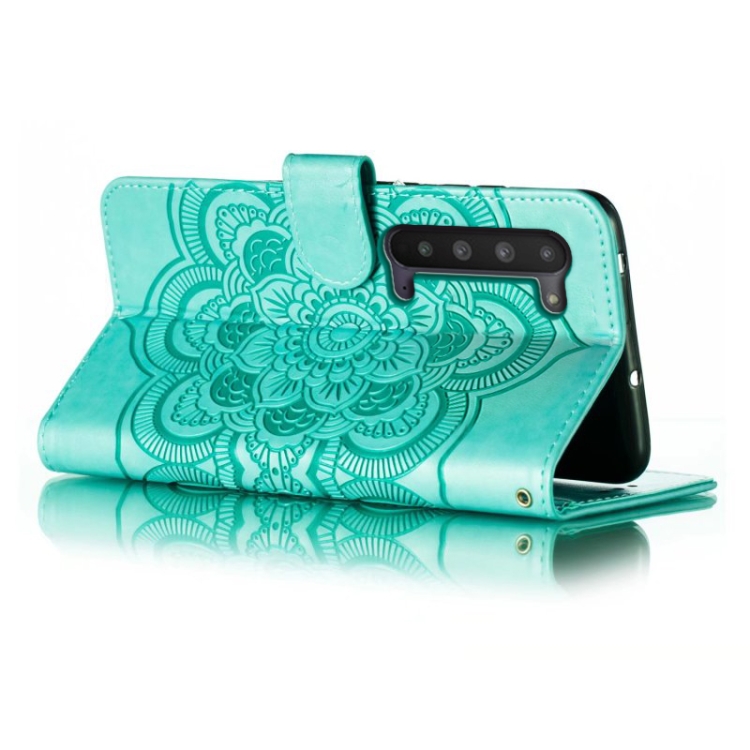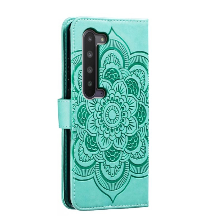 Funda de Cuero para Sharp Aquos R5G con Patrón Sun Mandala en Relieve (Verde)