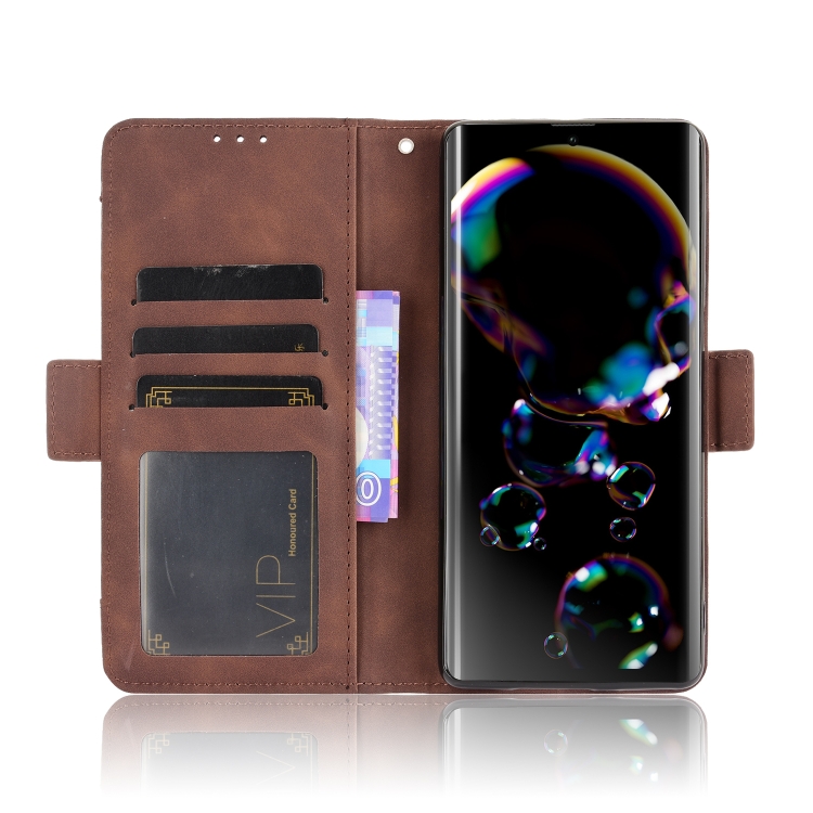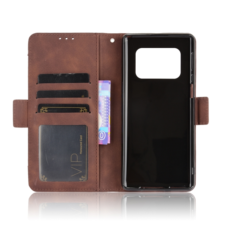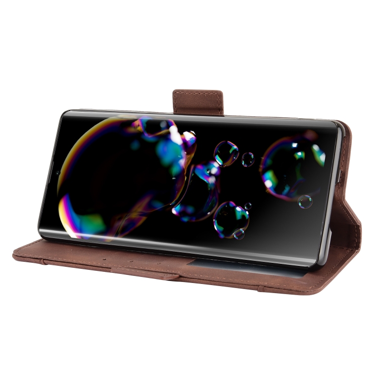 Funda de Cuero para Sharp Aquos R6 con Soporte, Ranuras para Tarjetas y Marco de Fotos (Marrón)