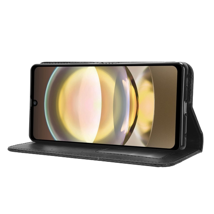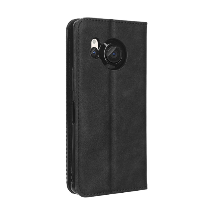 Funda de Cuero para Sharp Aquos R8 con Hebilla Magnética y Textura Retro (Negro)
